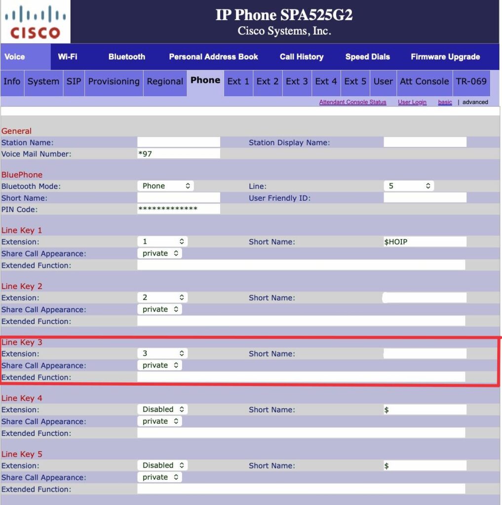 Then go to the Phone tab and make sure that whatever line key you’re using for your extension has the correct extension selected. The Short Name can be anything you wish, the default $USER will display your extension number next to the line key button. You can also put a name in there instead like AWire or whatever you prefer.